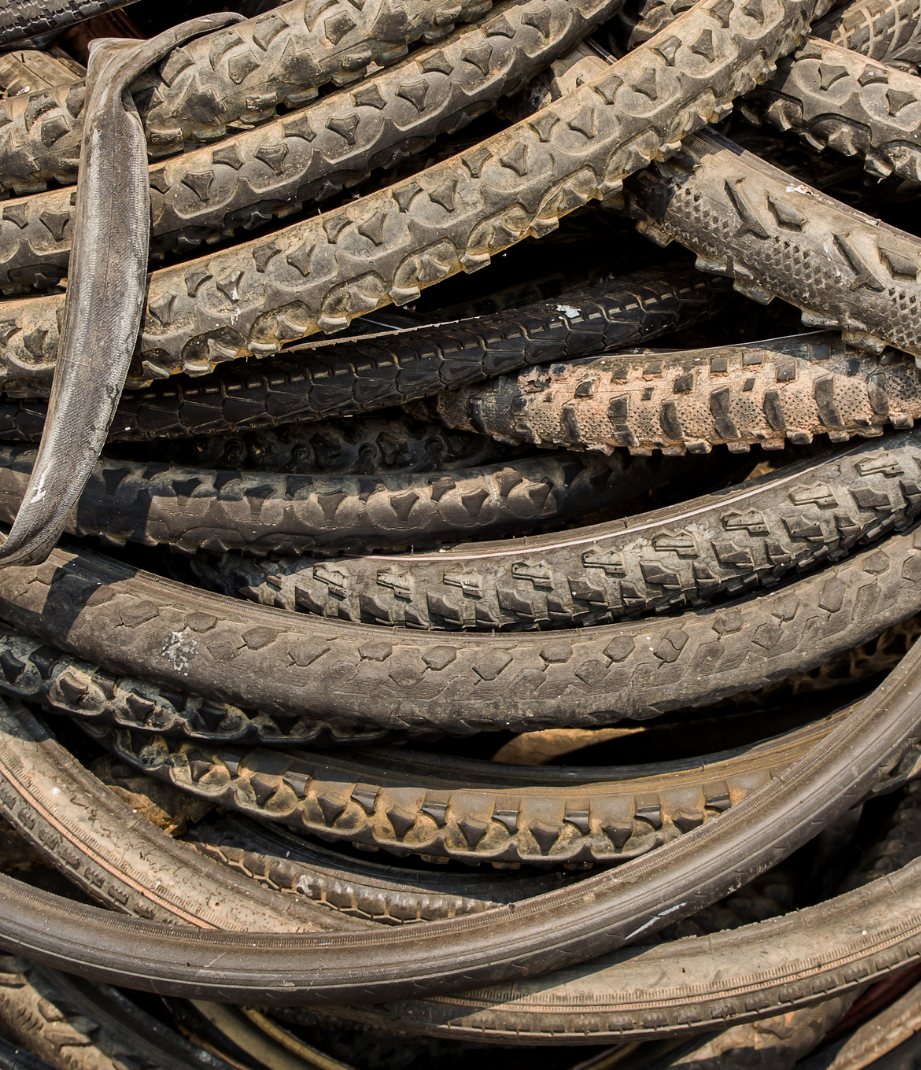 Each year over a billion tyres reach end-of-life due to punctures or wear and tear, resulting in 1 million tonnes of bike tyres and tubes discarded every year – none of which will be recycled. Discarded tyres are sent to landfill, or are burned, causing significant environmental damage.